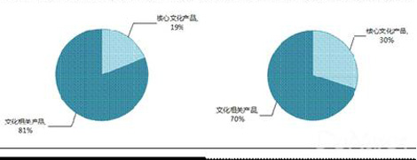 2012年与2013年上海核心文化产品与文化相关产品占比图